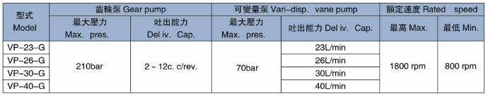 訂購:可變容量葉片油泵+齒輪油泵VP-23,26,30,40-G