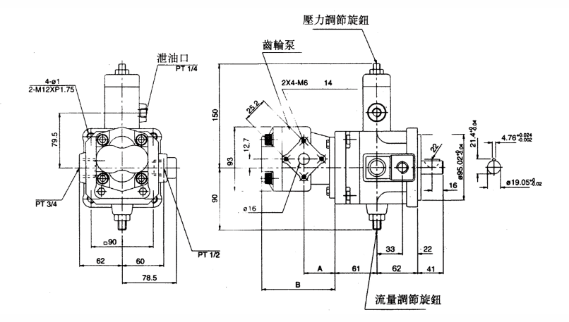 可變容量葉片油泵+齒輪油泵VP-23,26,30,40-G
